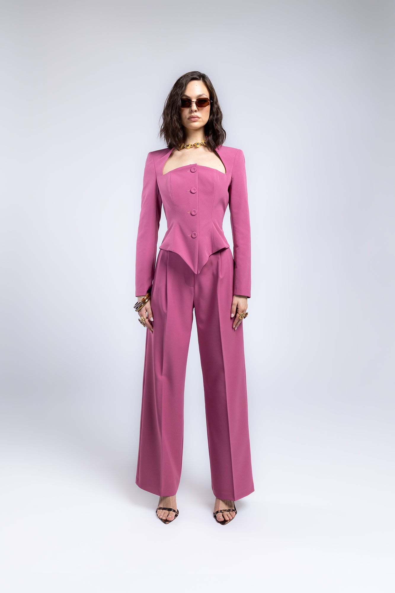 Giacca bustier dal taglio asimmetrico, con spallina che dona struttura e carattere al capo. La silhouette sagomata valorizza il busto, mentre il design moderno e distintivo conferisce un fascino contemporaneo e deciso. Perfetta da abbinare a pantaloni o gonne per look sofisticati e di grande impatto.